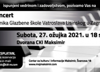 U srijedu, 24. ožujka 2021. godine, Centar za kulturu i informacije Maksimir, ima posebnu čast i zadovoljstvo organizirati koncert mlade...