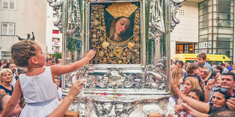 U Sinju, jednom od najvećih hrvatskih marijanskih svetišta, blagdan Uznesenja Blažene Djevice Marije, 15. kolovoza, svake godine slavi se posebno svečano. Nepregledno mnoštvo hodočasnika, svih generacija i sa svih strana Lijepe naše i šire, dolaze u Sinj sa samo jednim ciljem – kleknuti i sklopiti ruke pred Čudotvornom Gospom Sinjskom, prignuti se na tihu molitvu, uputiti molbe i zahvale nebeskoj Majci, zapaliti svijeću pred Gospinim likom i otvoriti srce Njenoj milosti. Čudotvorna Gospa Sinjska nebeska je zaštitnica grada Sinja pa se i Dan grada slavi 15. kolovoza.