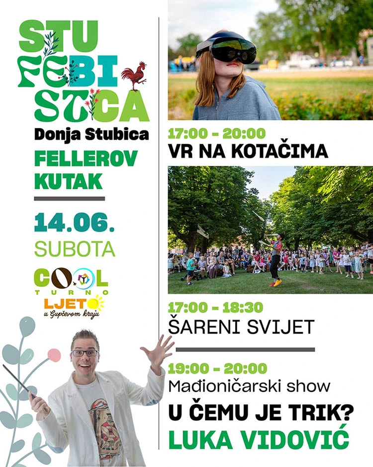 Jeste li ikada bili na festivalu koji vas je iz srednjeg vijeka u jednom danu prebacio u današnje doba? Jeste li se ikada na jednom mjestu sa viteškog turnira zavrtili u modernom zabavnom parku i plesali sa nekoliko tisuća ljudi ispred bine na popularnim koncertima, a još se pritom prijepodne okupali na zagorskoj zelenoj rivijeri Termi Jezerčica? Ukoliko niste, vrijeme je da se uputite u Gupčev kraj u zeleno Zagorje, na festival „iza Brega“ za koji će mnogi reći koji su bili: A da, to je Stubica fest. Malo koji festival, već na prvom svom izdanju prije 4 godine, okupio je veliki broj ljudi svih generacija. Stubica fest prikazati će vam i ove godine svu raskoš Gupčevog kraja u bogatom vikendu od 13.6. do 15.6. na nekoliko atraktivnih lokacija: Gastro zabavnoj zoni (glazbeni program, zabavni park i bogata gastro ponuda), Tahijevom viteškom turniru (bogat sadržaj srednjovjekovne tematike) te u Fellerovom kutku (edukativno zabavni program za djecu i odrasle).